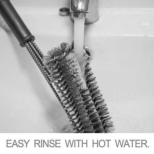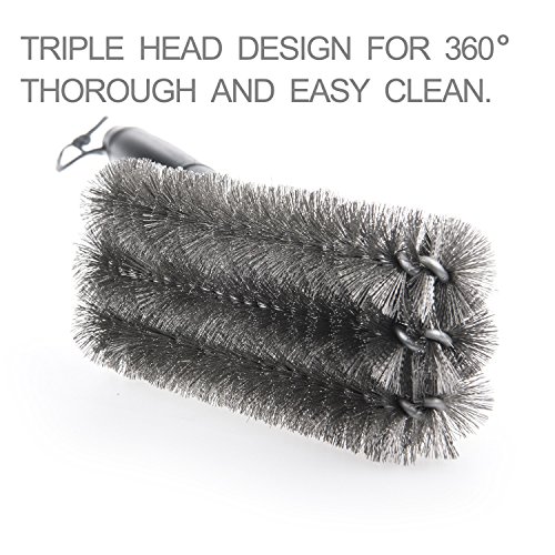 - TRIPLE HEAD DESIGN FOR 360 DEGREE THOROUGH CLEAN: The innovative triple head brush with stainless steel bristles enables you to scrub burnt residues and gunk off all sides of the grill grates faster and easier than any other brushes.