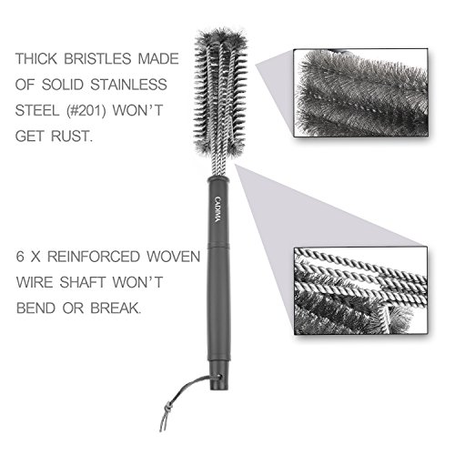 - OPTIMAL HANDLE LENGTH: Through extensive experiments, we’ve found 18inch is the best length for a grill brush. Long enough to keep your hands from getting burnt, and short enough to make you retain leverage and control in cleaning.