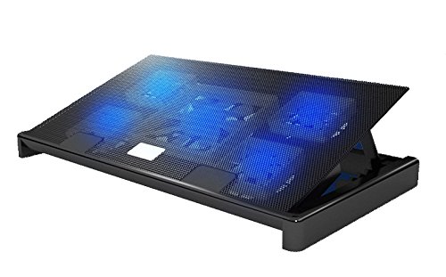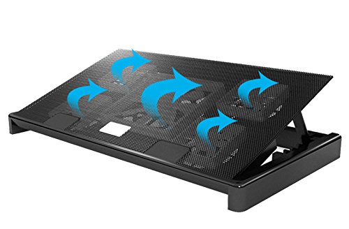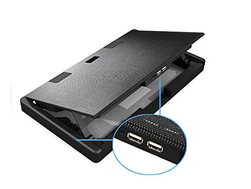 -. Feature : 5 Built-in fans with LEDs, maximum thermal heat dissipation / Adjustable laptop fan speed : You can control the speed meet your laptop requirement ,low CPU utilization rate that you can slow down the speed to save power / Adjustable height stand : Ergonomic designed adjustable gradient for easy typing / The fans quietly whir the heat away from your laptop at a rate of 1000+-10% RPM and adjustable, producing 70+-10% CFM of airflow / Plug and play, no external power supply is needed, no software installtion is required