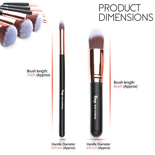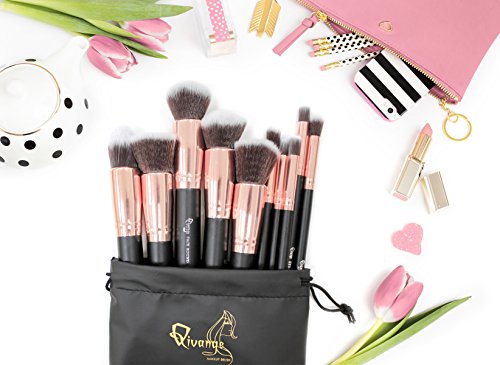 Qivange Makeup Brushes with Pouch, Black with Rose Gold (10 Pieces)