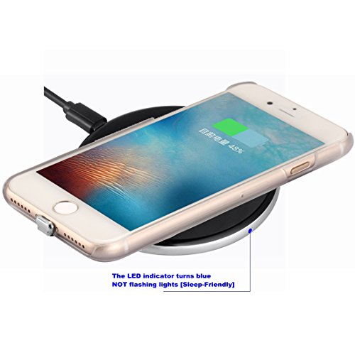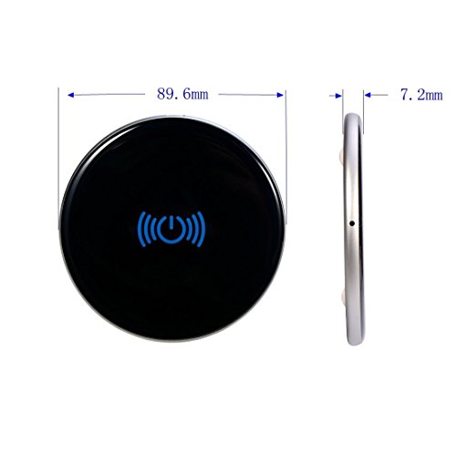 4.Wireless Charging Pad:A small blue light will turn on NOT flashing / glowing lights. Built-in over-voltage, under-voltage and short circuit protection, safety for charging and gives a better battery life.Fashionable and elegant appearance, very convenient to use, The middle portion of wireless charger is made of black ACRYLIC, the underside is made of the silver aluminum with nonskid rubber feet. Small blue LED light indicates wireless charging status.