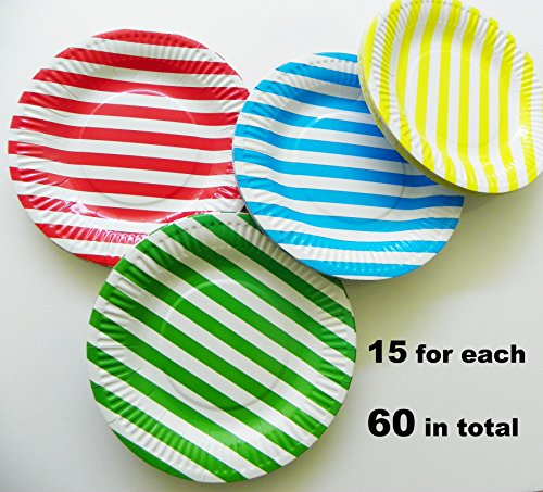 - Dimension: 7"/18.5cm,550g/19oz, Round Papper Plates, 60 pcs in total, 15 for each color