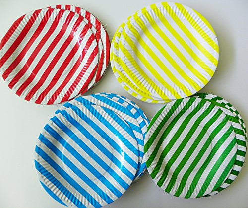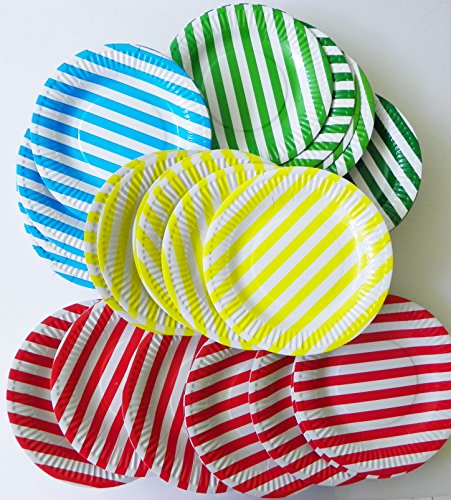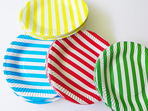 ReaLegend 60 Count 7-Inch Colored Stripe Round Theme Party Cake Dessert Papper Plates - Multicolor Stripe