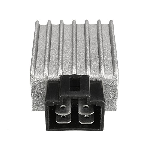 Description: Saving and stabilizing current. Higher grade of electronic components. Direct replacement to your original unit. Plug-and-play, direct fit, easy installation. No assembly required. Specification: Model Number: 505781 Product Name: 12V 4 Pin Voltage Regulator Rectifier Color: Silver black Material: rubber plastic metal Voltage: 12V Quantity:One Fitment: Fit for Scooter, Moped, ATVs, Gokarts, Buggie with GY6 Motor 50cc to 150cc Fit 1: for Harley Fit 2: for Bobber Fit 3: for Honda Fit 4: for Yamaha Fit 5: for Suzuki Fit 6: for ATV Color Fit 7: for BMW Fit 8: for Ducati Package Included: 1 X Voltage Regulator