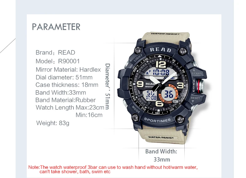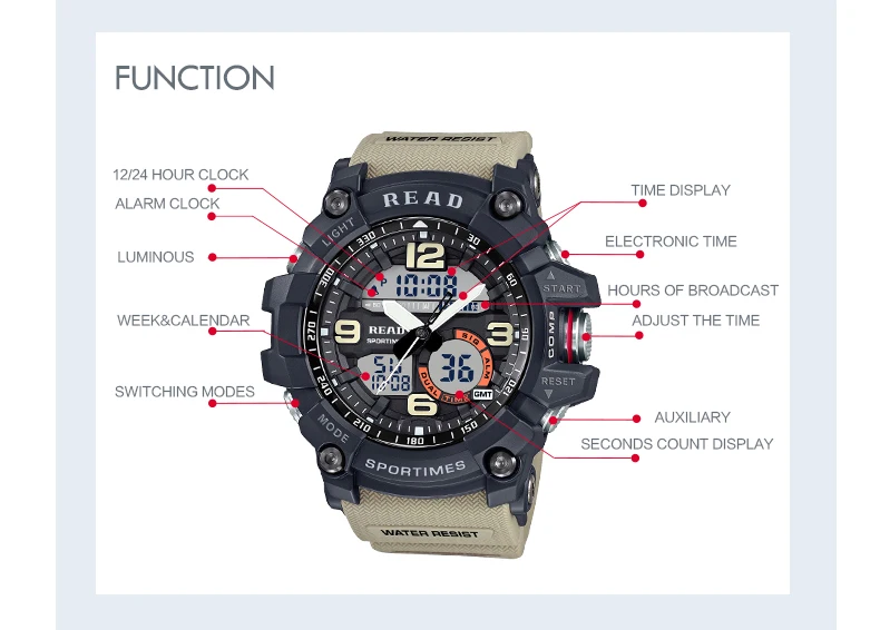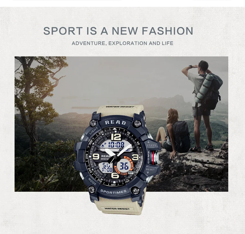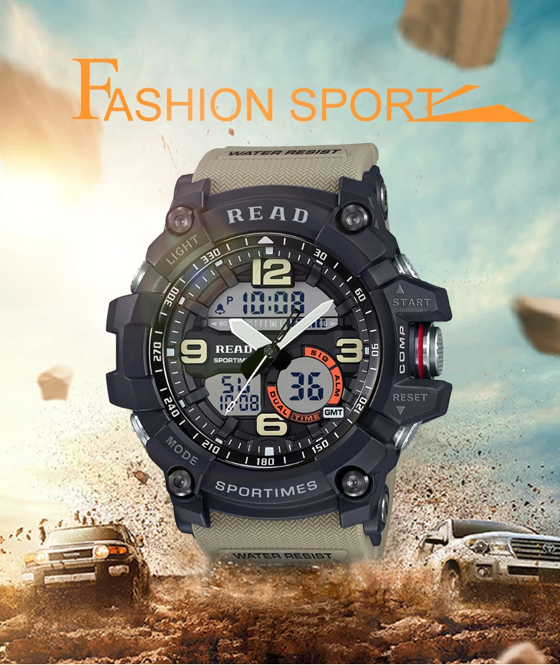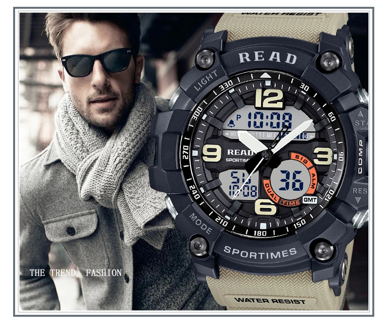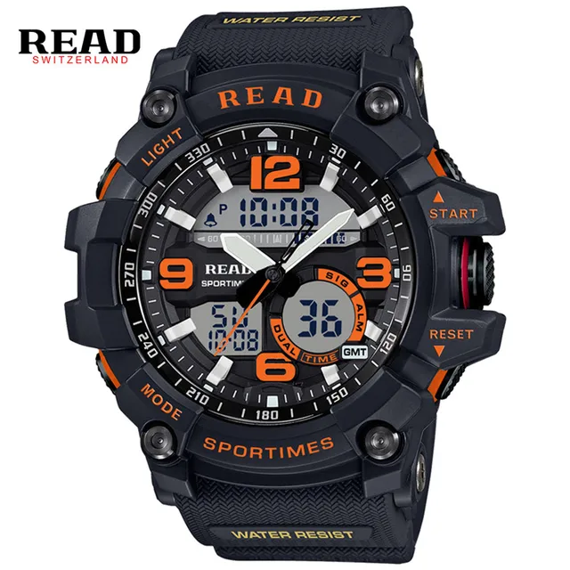 | [해외] Read 아날로그-디지털 시계 남성 스포츠 50 메터 전문 방수 석영 큰 다이얼 시간 군사 손목 2017 패션 |