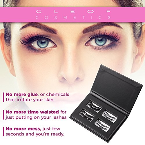 -. Binding : Misc. -. Brand : CLEOF -. Feature : FOR A CAPTIVATING LOOK: With the Cleof false eye lashes you can add volume to your look and be the center of attentioneverywhere you go! The magnetic lashes will make your eyes pop and look absolutely stunning in the most natural way! These lashes will give you the 3D look you are going for without having to use excessive mascara that will get smudged by the end of the night! / NO MORE MESSY APPLICATION: Forget about your usual false eyelashes that require you to use glue and they never look quite right! The magnetic eyelashes do not require any glue or special applicators as they are very easy to use. Just use the magnets to lock them on your eyelashes and look fabulous in no time! / LONG LASTING EFFECT: With these false eyelashes you can look absolutely stunning all night long without worrying about your lashes falling off! The Cleof lashes have 3 magnets on each piece instead of 2, so you can have an incredibly strong hold and long lasting 3D effect. / REUSABLE ANDDURABLE: Themagnetic eyelashes are made to perfection with the bestquality materials to give you maximum results and durability. The lashes can easily be removed and reapplied so you can use them over and over again. Just make sure that you take good care of them for perfect long lasting results every time! / LIGHTWEIGHT AND COMFORTABLE: The magnetic eyelashes are very lightweight so you won't even notice you're wearing them! They are very comfortable and they will never cause any irritation to your eyes or damage your natural lashes so you can rest assured that they are the perfect choice for you! -. IsAdultProduct : 0 -. Label : CLEOF -. Manufacturer : CLEOF -. ProductGroup : Beauty -. ProductTypeName : BEAUTY -. Publisher : CLEOF -. Studio : CLEOF -. Title : Magnetic Eyelashes - Reusable Magnetic False Lashes - Improved Version (Triple-Magnet, Extra-Long) 2