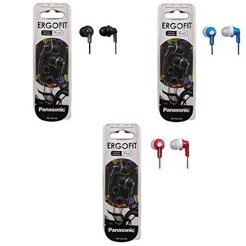 -. Feature : Includes 3 Panasonic Earbuds in Assorted Colors / 1 Black, 1 Blue & 1 Red / Wider frequency response for fuller listening enjoyment / Long 3.6-ft cord threads comfortably through clothing and bags / Black ultra-soft ErgoFit in-ear earbud headphones conform instantly to your ears