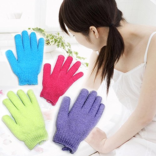 YEYIMEI Exfoliating Shower Gloves Scrubber Bath Gloves for Men, Women & Kids 4 Pairs (Package-001)