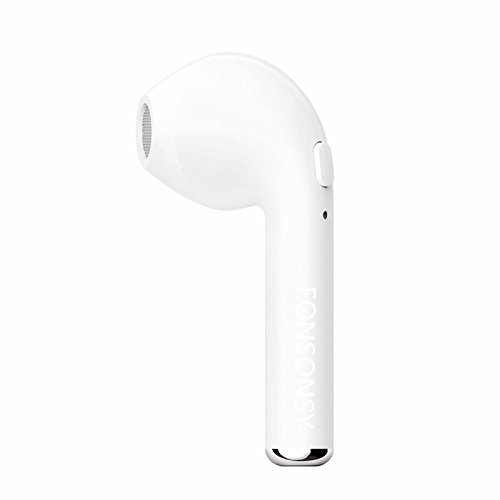 -. Binding : Wireless Phone Accessory -. Brand : FONSONSY -. Color : White -. EAN : 0637045264335 -. Feature : Mini Wireless Headset In-Ear Earphone Earpiece headphone / Built-in Bluetooth 4.1 technology , Compatible with most Bluetooth enabled devices, such as Apple iPhone, Android Samsung, etc., pairing up just take a few seconds.ideal gift for your father,mother ,lover. / EASY TO USE: Compatible with most Bluetooth enabled devices, such as Apple iPhone, Android Samsung, etc., pairing up just take a few seconds.(NOTE: package only contains earphone for right ear). Any question, please contact seller, we'll try our best to resolve it as soon as possible. / CHARGING AND BATTERY: Built in low battery indicator light will slowly flash when you need to charge the small headset.Charge 1.5 hours with NOKIA Mini charging interface extended battery life of 3-4 hours music,5-6 hours talking,standby time up to 120 hours / COMFORTABLE & PERFECT SIZE: Ergonomic design, no troublesome wires from tangling or around your neck. No worry of wire stuck by sweat when doing workouts, true meaning of wireless life. -. Label : Fonsonsy -. Manufacturer : Fonsonsy -. Model : i7 -. PackageQuantity : 1 -. ProductGroup : Wireless -. ProductTypeName : WIRELESS_ACCESSORY -. Publisher : Fonsonsy -. Studio : Fonsonsy -. Title : FONSONSY Bluetooth Earphone Wireless Headset In-Ear Earphone Earpiece headphone for Iphone/7 7 plus/ 8 8 plus/ X for Samsung Galaxy S7 S8 and Android Phones (Single left ear) (White) -. UPC : 637045264335