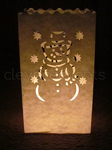 CleverDelights White Luminary Bags - 10 Count - Snowman Design - Flame Resistant Paper - Christmas Holiday Outdoor Decorations - Party and Event...