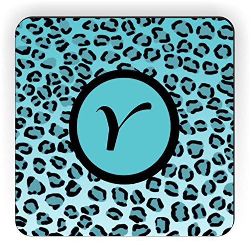 Rikki Knight Letter "Y" Initial Sky Blue Leopard Print Monogrammed Design Square Fridge Magnet