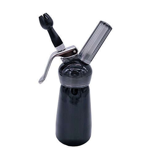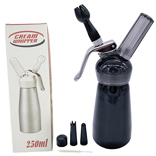 Professional N2O Aluminum Whipped Cream Dispenser with Nozzles and Cleaning Brush (250ml, Black)