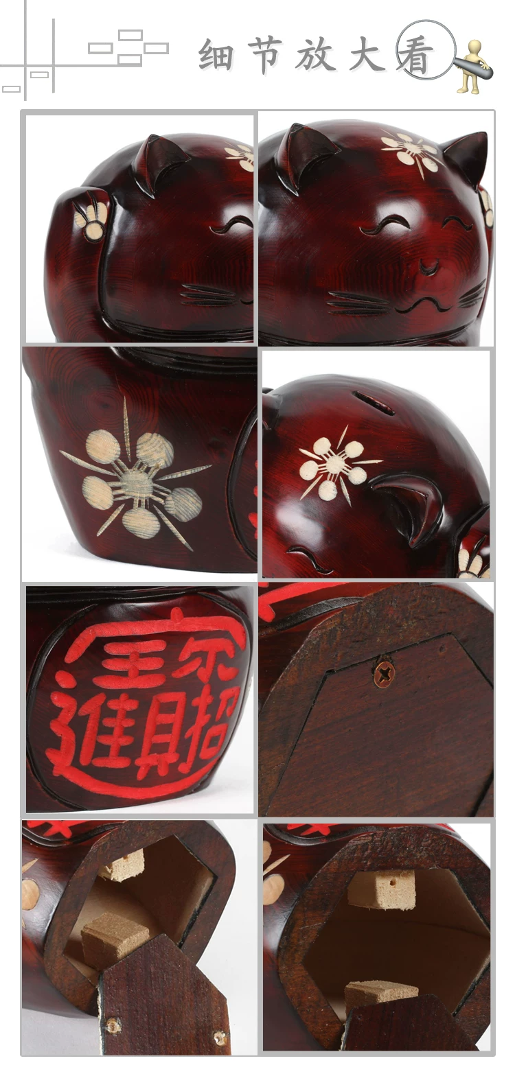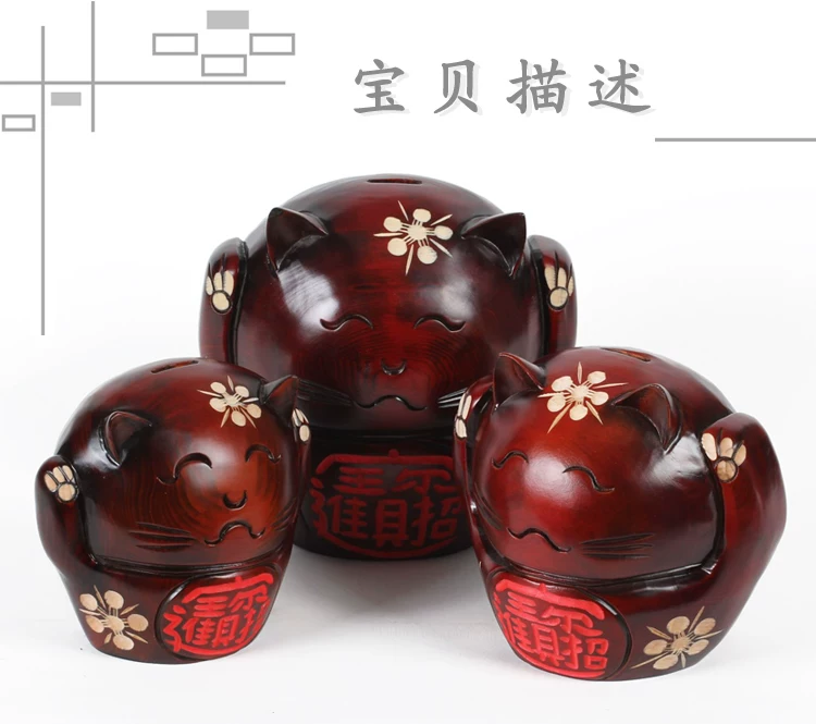品名:招财猫存钱罐 | 规格:小号:16*12*14cm 中号:17*12*17cm 大号:21*15*21cm | 包装:纸盒 | 选材:桃木/松木 |