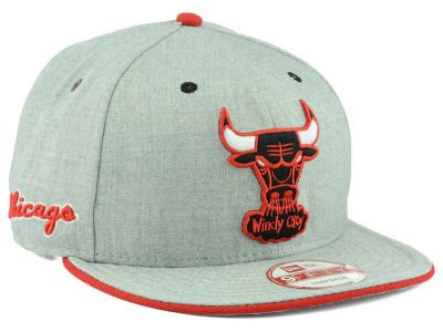 Unisex New Era Heather Grey/Red Chicago Bulls 9FIFTY Snapback Cap This New Era NBA Hardwood Classics Heather 9FIFTY snapback cap features a gray crown and contrasting brim in team colors. This cap is ideal for wearing during basketball season to cheer on the Chicago Bulls in style. High crown Structured fit Normal bill Embroidered team logo at front Embroidered New Era flag at left side Embroidered team logo at right side Moisture-absorbing sweatband Branded taping at interior Adjustable snapback closure at back Acrylic/wool Spot clean only Imported