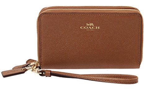 -. Title : Coach Crossgrain Leather Double Zip Phone Wallet in Saddle, F57467 IMSAD