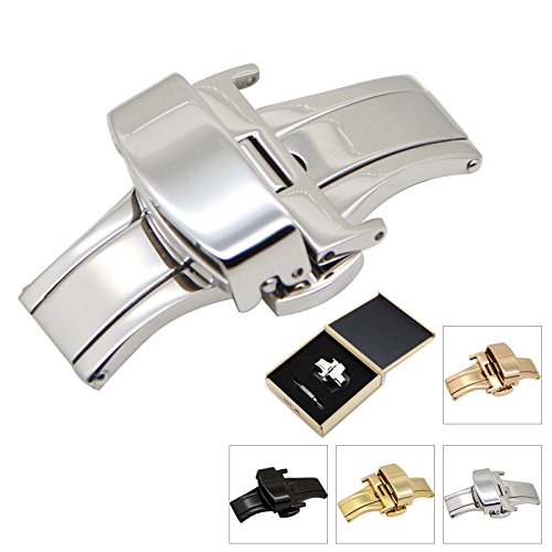 -. Binding : Watch -. Brand : ZLIMSN -. Department : mens -. Feature : Newest: The most convenient, the most fashionable style.Polished finish / Double Push Button Fold Butterfly Buckle.Butterfly deployant clasp, would snap open when pressing the 2 buttons.VERY esay open. / Width: 12mm 14mm 16mm 18mm 20mm 22mm 24mm. Please measure your watch strap width before order. / Made of 316 L solid stainless steel WITH PVD color / Note: The clasp is standard style, can fit most watch strap,Suitable for Panerai watches.Please kindly understand that the color may be a bit different from that shown in the photo due to different batches of genuine leather. -. ProductGroup : Watch -. ProductTypeName : WATCH -. Title : ZLIMSN Stainless Steel Butterfly Deployment Buckle Double Push Spring Bar Deployment Fashion Watch band Clasp Color & Width Silver Rose gold Golden Black