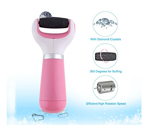 Lifecolor Diamond Crystals Electric Pedicure Foot File Callus Remover Foot Care Tool Shaves Dead Skin Feet, Pink