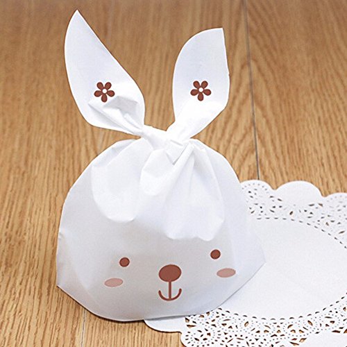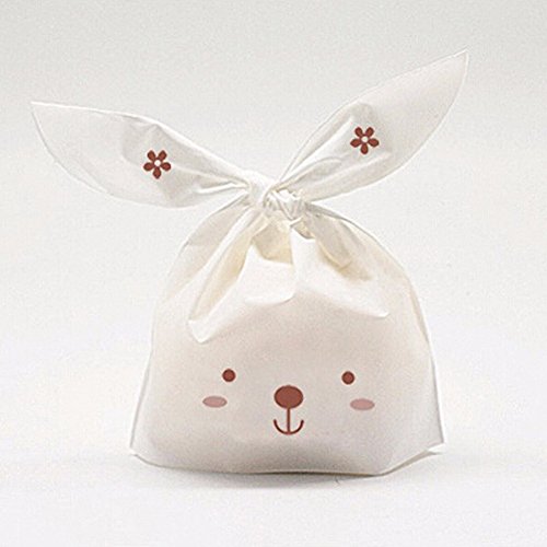 Coobbar 50pcs Lovely White Rabbit Ear Biscuit Bag Gift Packing Bag Candy Bag Apple Bag Cookie Flat Bags