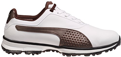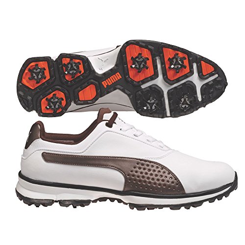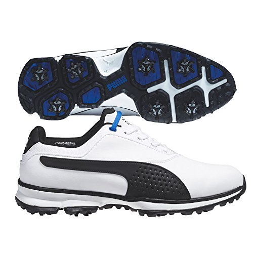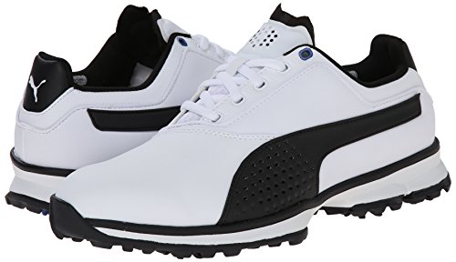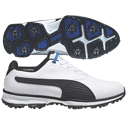 Puma TitanLite Shoes - White/Black The TitanLite Shoes have Stealth Cleats w/ K5 for a low-profile and utilizes Kevlar for long lasting abrasion resistance. It's POWER TOE design maximizes force and power creation throughout swing for a smoother follow-through. Directly inspired by TitanTour, pro golfer Rickie Fowler's shoe, the TitanTour is a true performer for players at any level. Featuring Outlast technology for temperature regulation, this golf shoe re-sets the benchmark for coolness, stability, and comfort that plays well under par. Features: Microfiber synthetic leather for lightweight durability and comfort Outlast Technology for a cooler and more comfortable experience with temperature regulation Textile lining for all day comfort and breathability EverFoam® cushioning at the heel for a comfortable fit FusionFoam compression EVA foam is 15% lighter than traditional midsole foam and provides a super comfortable fit, a more responsive ride and long lasting durability POWER TOE forefoot construction to maximize force and power creation throughout swing Stealth Cleat with K5 for low-profile cleat utilizes Kevlar for long lasting abrasion resistance High abrasion resistant rubber that provides excellent grip and long lasting durability Includes multiple laces to customize your style Crafted with durable materials with waterproofing guaranteed for one yearFeature