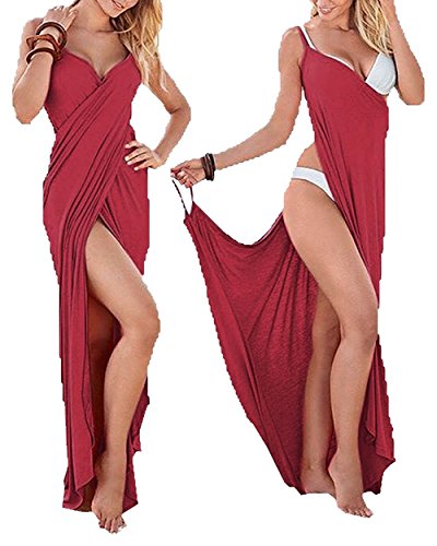 Yanekop Womens Spaghetti Strap Backless Strechy Bikini Rap Beach Dress