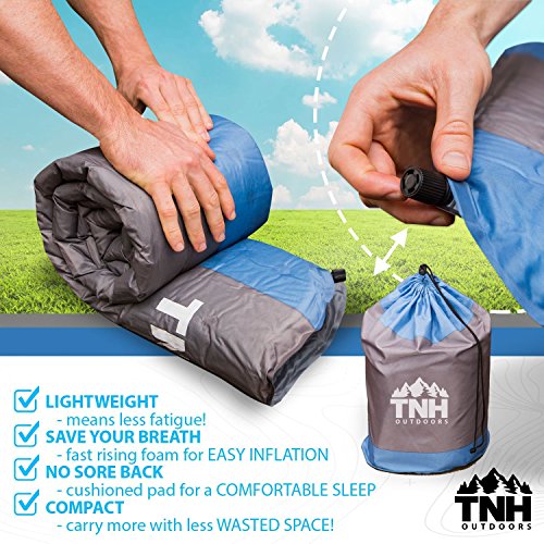✔ REFRESHED - Don’t wake up TIRED and GRUMPY to your family or camping buddies after sleeping on a lumpy or deflated sleeping pad. Wake up ready to explore the outdoors and more with the TNH Outdoors self inflating sleeping pad! We promise that you will have a good night’s sleep or your MONEY BACK!