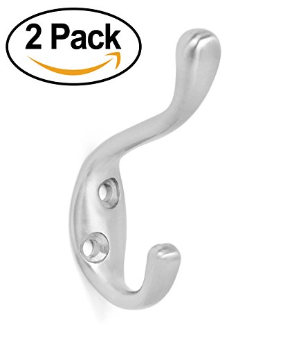 BirdRock Home Simple Wall Mounted Robe & Towel Hooks | 2 Pack | Dual Hook | Small | Brushed Nickel Towel Robe Hat Coat Hook