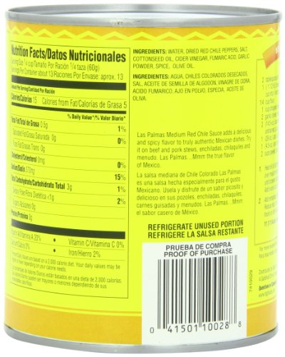 Las Palmas Red Chile Sauce, Medium, 28 Ounce (Pack of 12)
