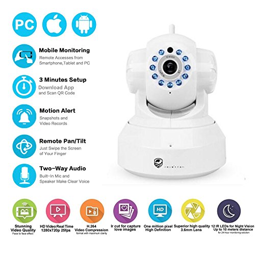 Kingo IP Camera 720p Pan/Tilt/Zoom Wireless Dome Camera Night Vision Security Surveillance System