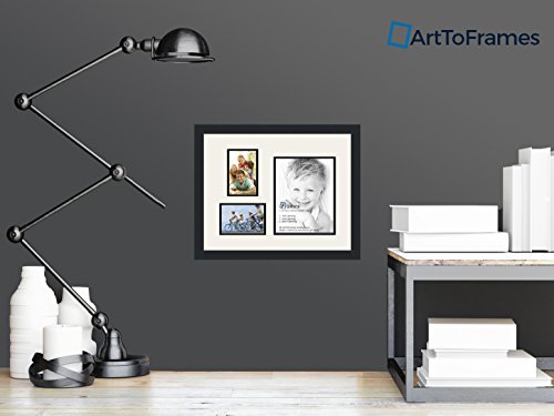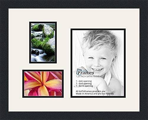 ArtToFrames Collage Photo Frame Double Mat with 1 - 8x10 and 2 - 4x6 Openings and Satin Black Frame