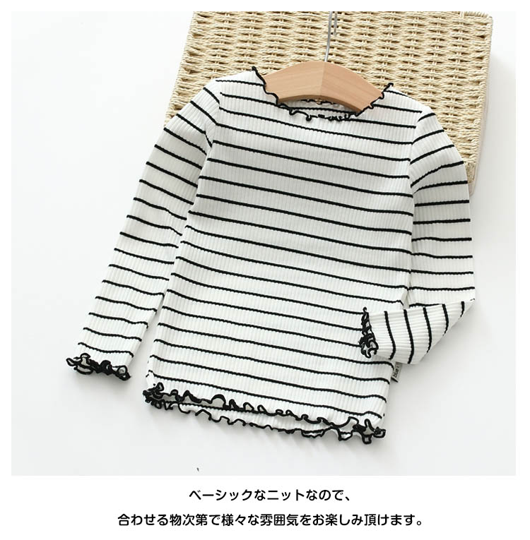 | シンプルなフリル襟のニットトップス◎ベーシックなニットなので、合わせる物次第で様々な雰囲気をお楽しみ頂けます。真冬と真夏以外は着やすいちょっと薄手の伸縮の良いトップスです。ボリューミやスカートだけでなく細めのパンツとも相性良く着られます。 | |
