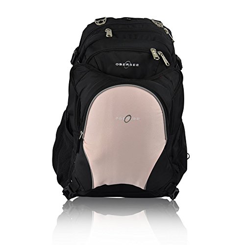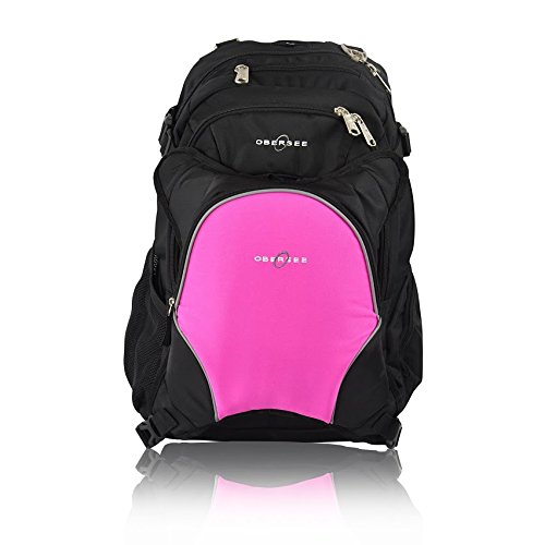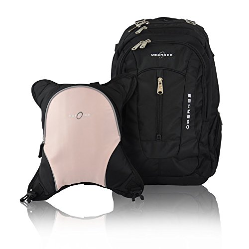 Obersee Bern Diaper Bag Backpack with Detachable Cooler, Black/Pink