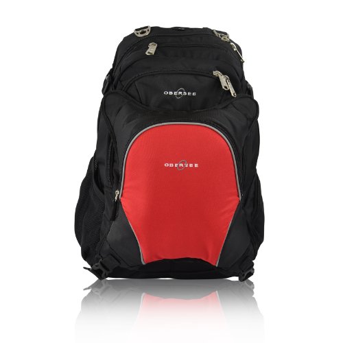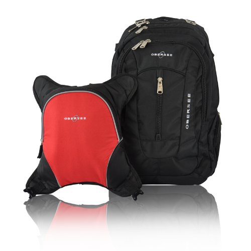 Obersee Bern Diaper Bag Backpack with Detachable Cooler, Black/Red