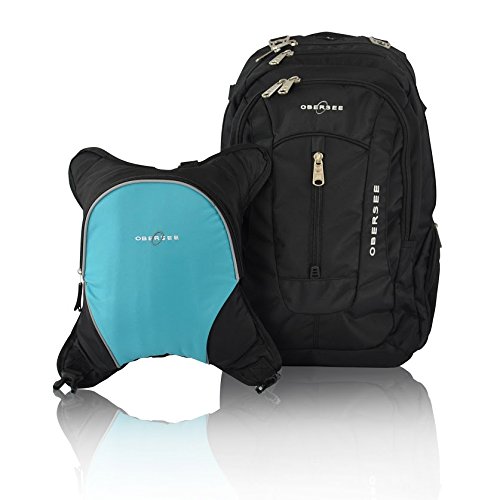 Obersee Bern Diaper Bag Backpack with Detachable Cooler, Black/ Turquoise