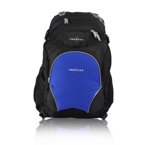 Obersee Bern Diaper Bag Backpack with Detachable Cooler, Black/Royal Blue
