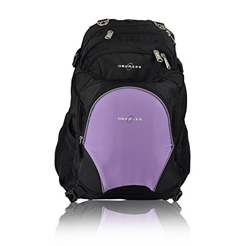 Obersee Bern Diaper Bag Backpack with Detachable Cooler, Black/Purple