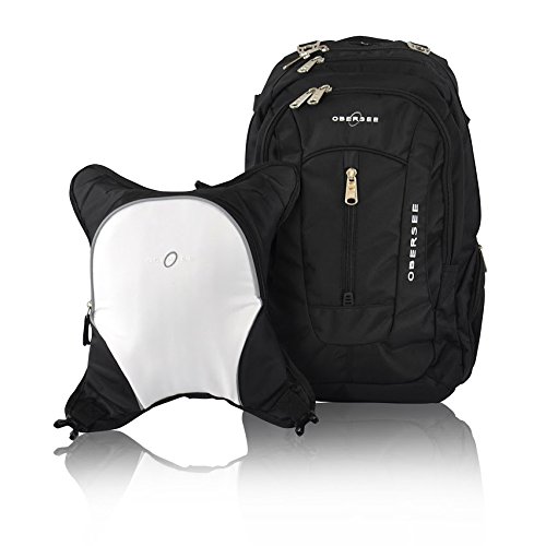 Obersee Bern Diaper Bag Backpack with Detachable Cooler, Black/Cloud