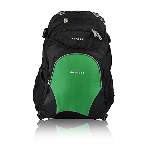 Obersee Bern Diaper Bag Backpack with Detachable Cooler, Black/Green