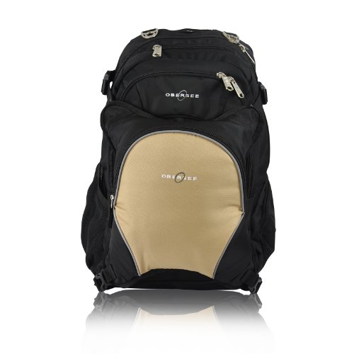 Obersee Bern Diaper Bag Backpack with Detachable Cooler, Black/Sand