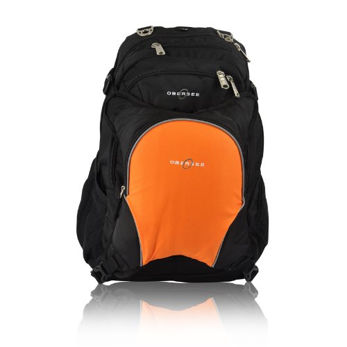 Obersee Bern Diaper Bag Backpack with Detachable Cooler, Black/Orange