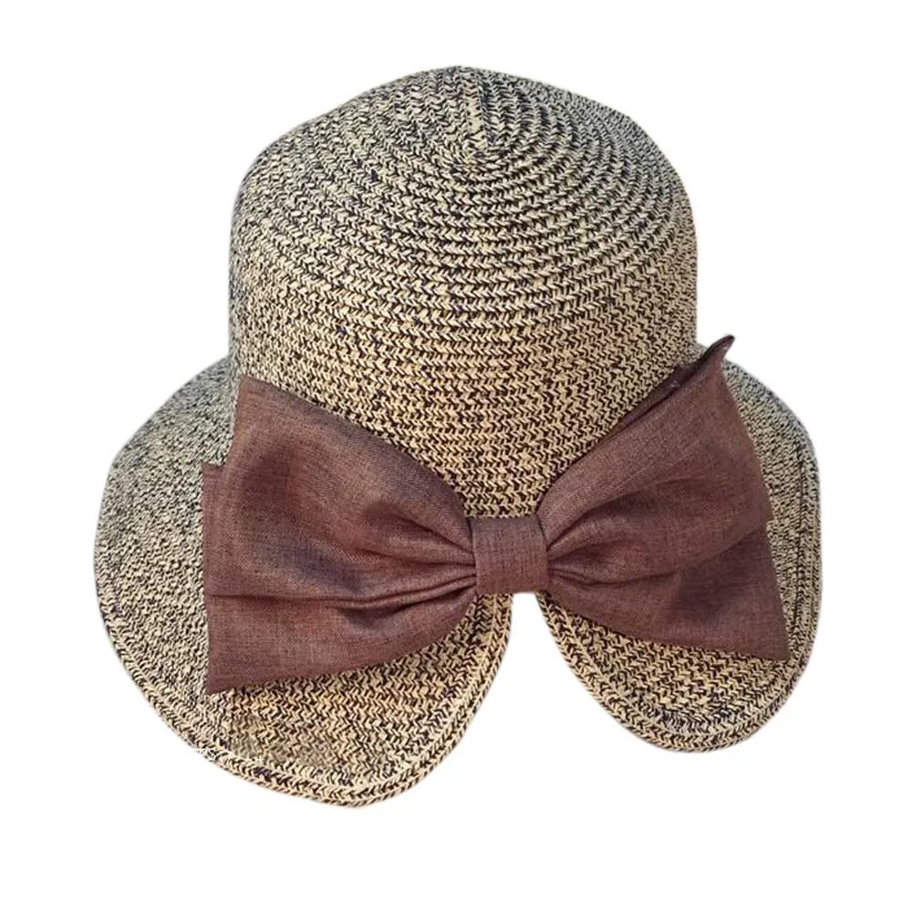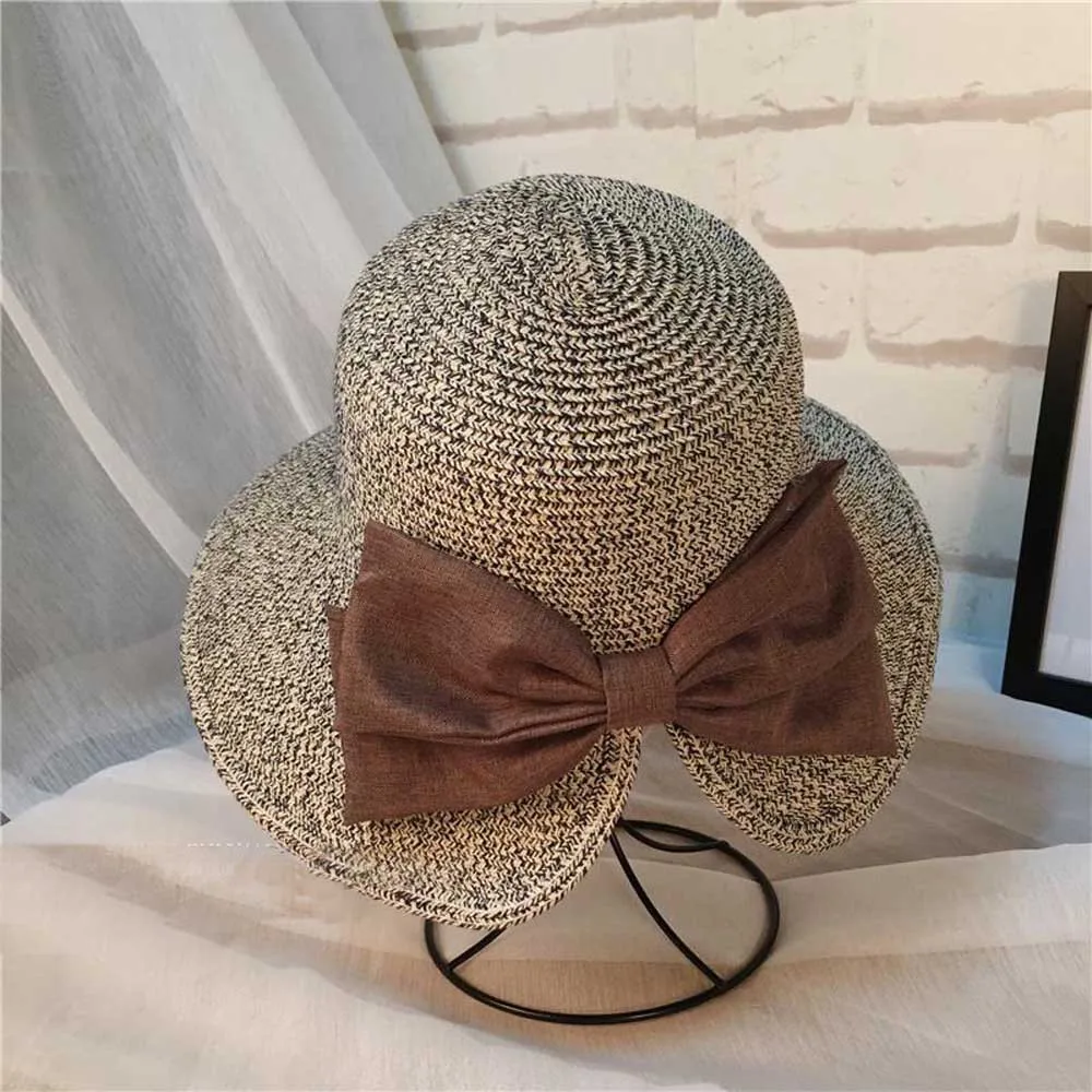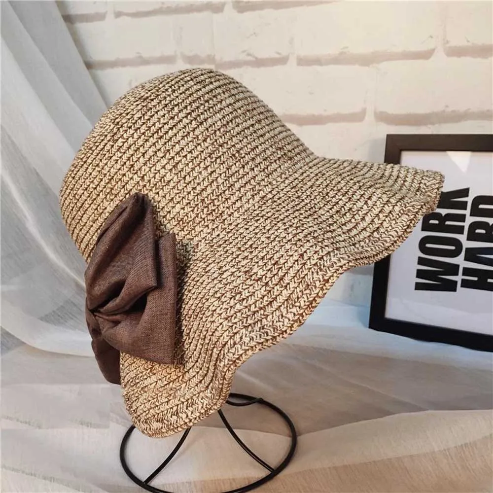 女性のわらキャップおしゃれな折りたたみ大つばかぎ針編み夏ニット西カウボーイ太陽帽子紫外線浜帽子女の子のため