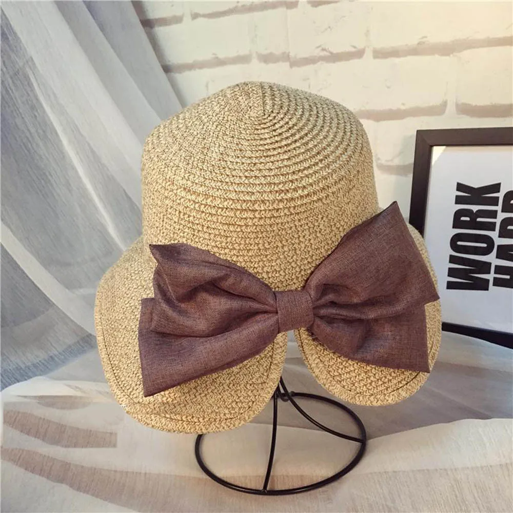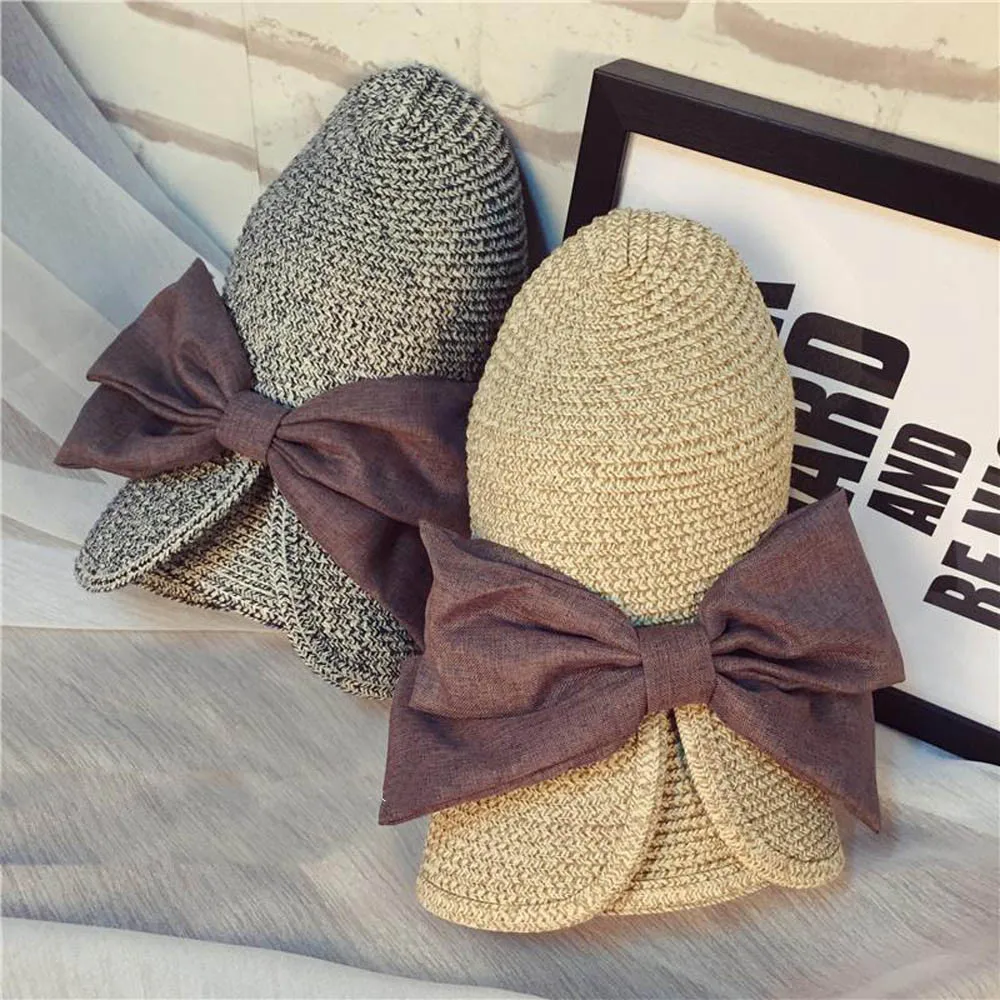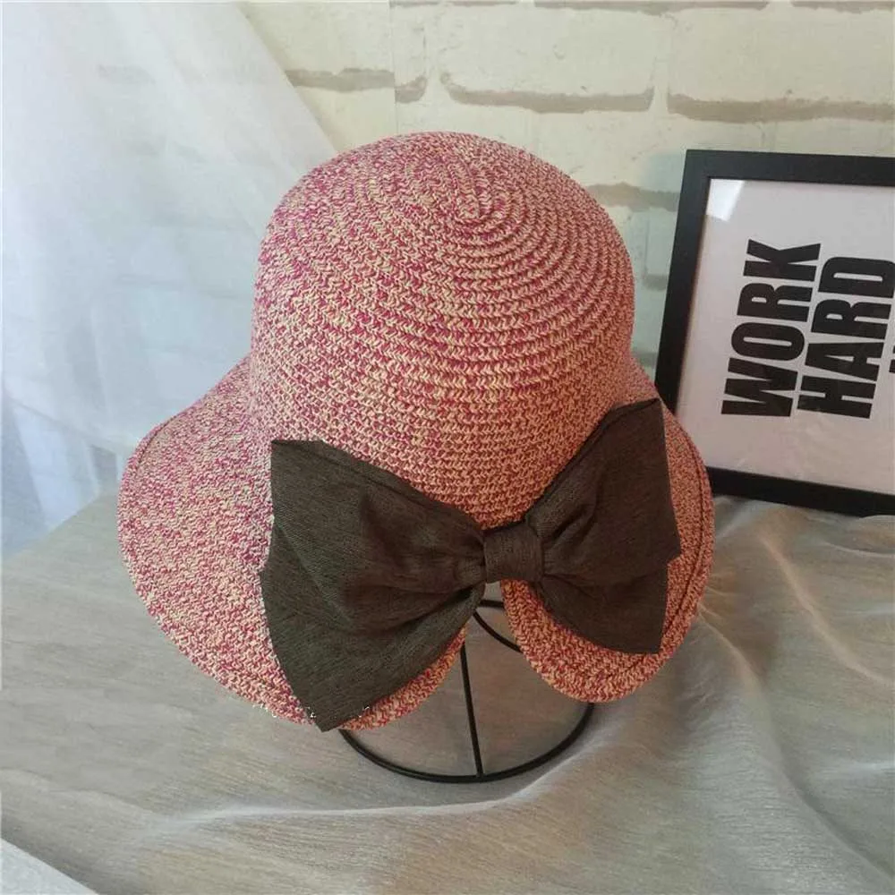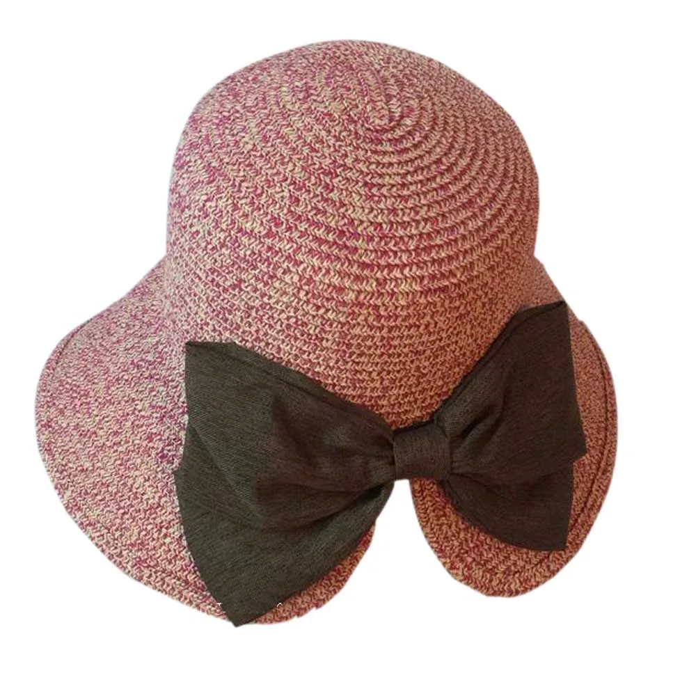 女性のわらキャップおしゃれな折りたたみ大つばかぎ針編み夏ニット西カウボーイ太陽帽子紫外線浜帽子女の子のため