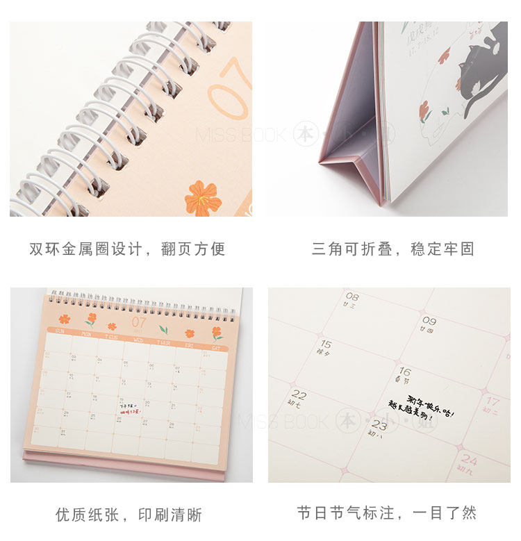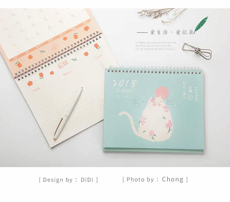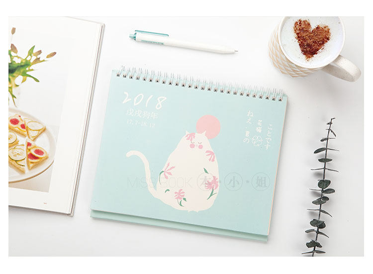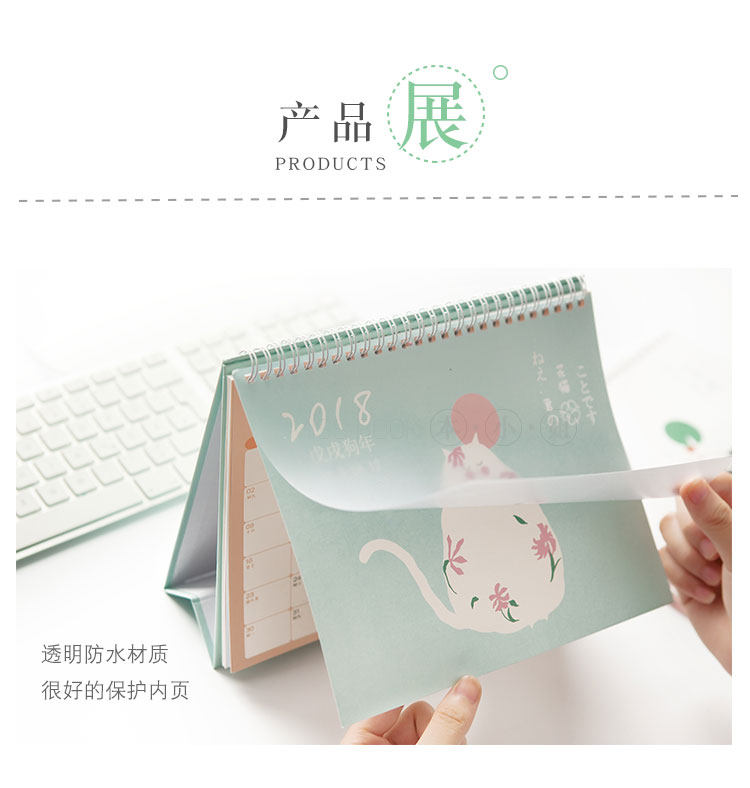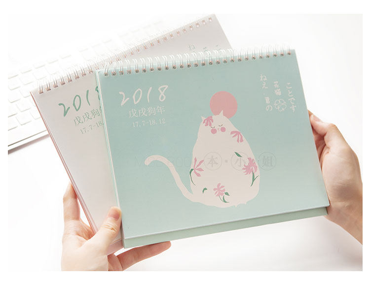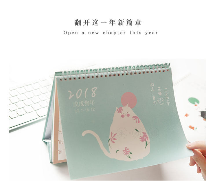 清新可爱猫咪2018台历 桌面折叠万年历 提醒备注日历 农历