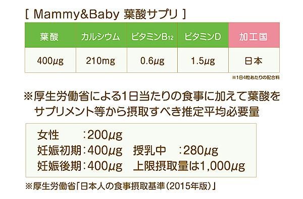 | 葉酸は、胎児の健やかな発育に必要な栄養素です。葉酸サプリメントを飲むタイミングは妊活中から飲み始め、出産後・授乳中まで継続的に摂取することをおすすめします。 |