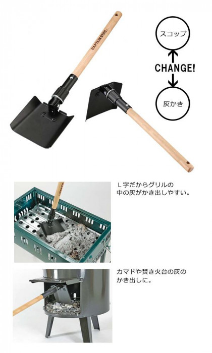 スコップと灰かき、使い方二通り。