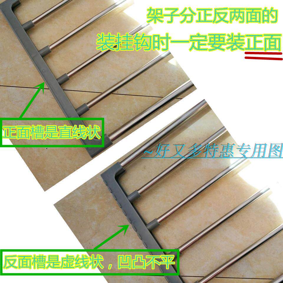 温馨提示:此款挂钩需要亲们收到后动手安装一下,祥情里面有安装图片,如有不会安装的请咨询客服,挂钩可以前后移动调节,可最大挂18厘米厚度内!中间材料有 钢管喷塑 和 不锈钢管 两种