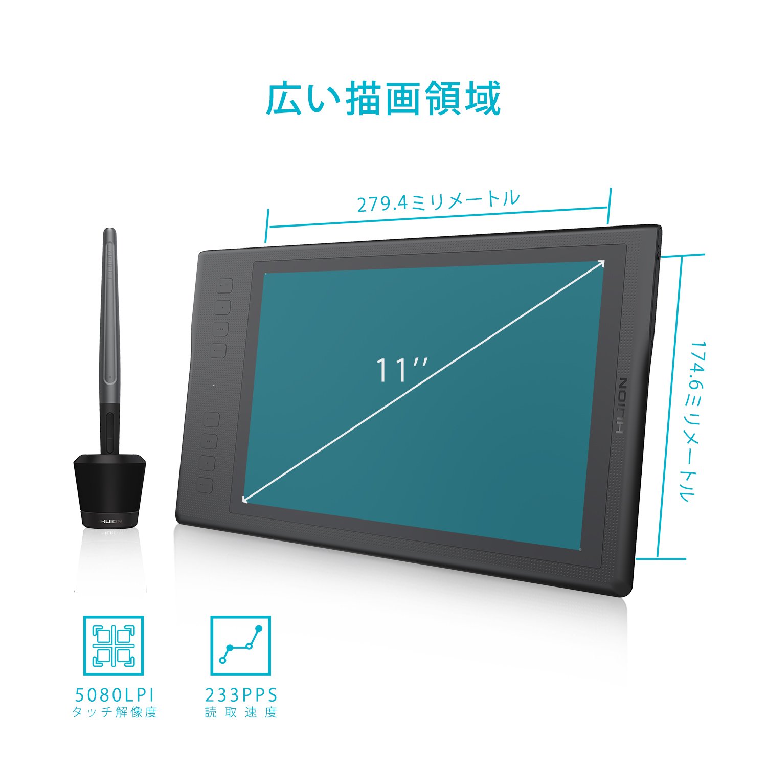 Pen Pressure 8192 level sensitivity pen, reading speed 220 PPS, touch resolution 5080 LPI.