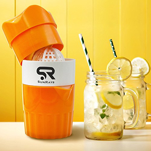 Enjoy a healthy and refreshing drink anytime, anywhere. So many times we crave freshly squeezed orange juice. Now we can have exactly what we crave, whenever we crave it! The portable Lime, Lemon and Orange Juicer by SunRays means you can make juice on the go in under a minute. Designed with your needs in mind. Measuring at only 6.8x3.6 inches, the small size of this multipurpose juicer makes it easy to store, be it in your cupboards, drawers, your bar or in your bag. It's designed with an integrated pulp filter and a built in cup that can hold up to 11 ounces of juice! Our juicer is made of durable, lightweight ABS plastic with soft rounded edges. we've added rubber footing on the bottom of our Manual Squeezer, which keeps it firmly grounded when in use! This not only prevents accidents, but creates a better grip. Making juice just got a whole more convenient! Enjoying a freshly squeezed cup of juice is one of those things in life that just feel great, and there's that extra bit of satisfaction knowing we made it ourselves. However that usually means a loud electric juicer or straining our hands on an old manual one, which isn't exactly a pleasant thing. That's why we've made an orange, lime and lemon press squeezer that gives you the efficiency of an electric one, with all the simplicity of a manual juicer. With our Fruit Press Juicer you can: ? Make flavorful juices at the drop of a hat - takes less than a minute to make any fruit juice ? Store it anywhere or take it with you - compact design ? Use it for a lifetime - built to stand the test of time ? Easily clean it in the dishwasher - separates into three parts SunRays Manual Squeezer Juicer will make a great gift for your mom, dad, sister, son, teacher, grandparents or a friend. Anyone can use it and everyone should have it in their kitchen. Enjoy freshly squeezed juice every day, starting today! 0 |
