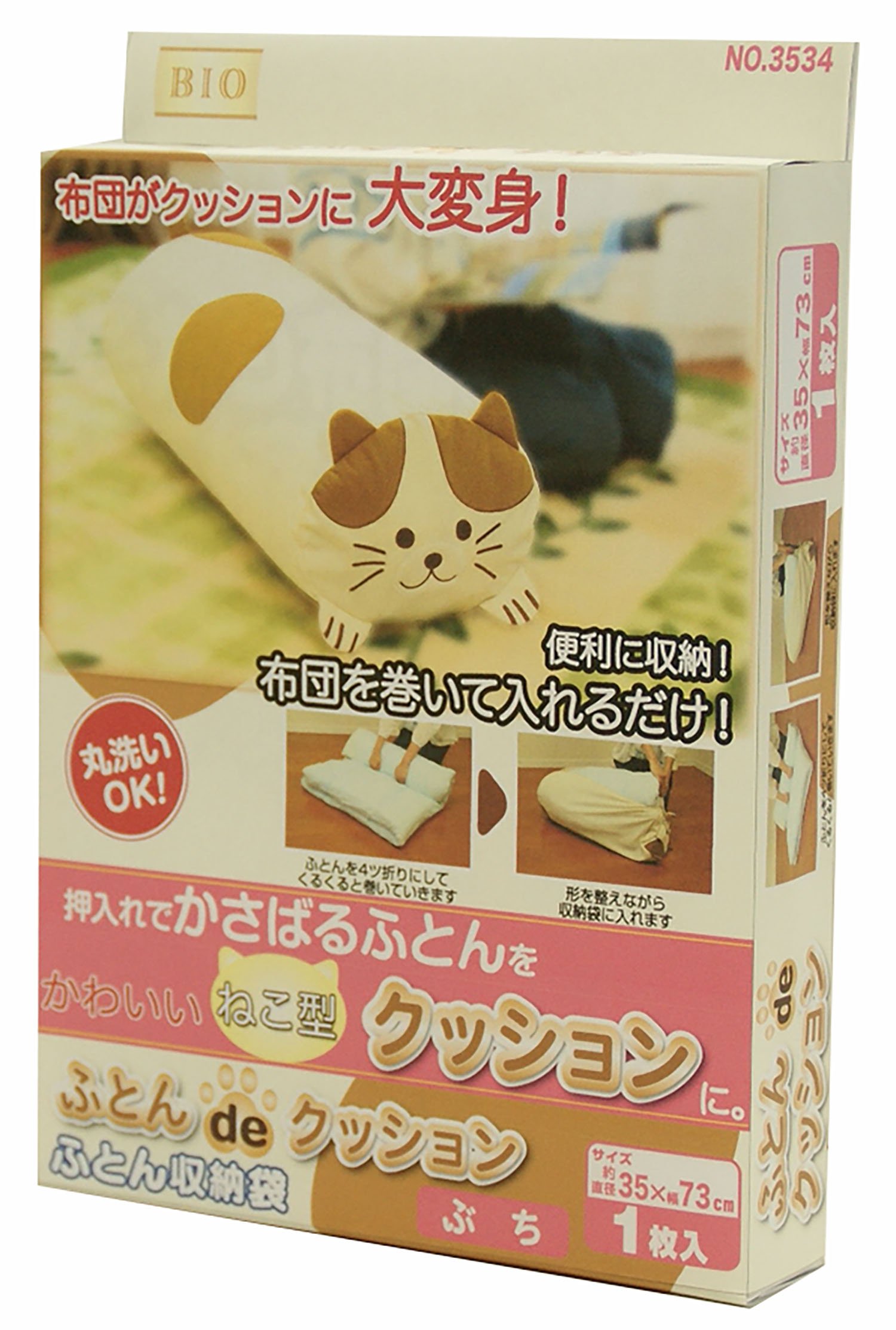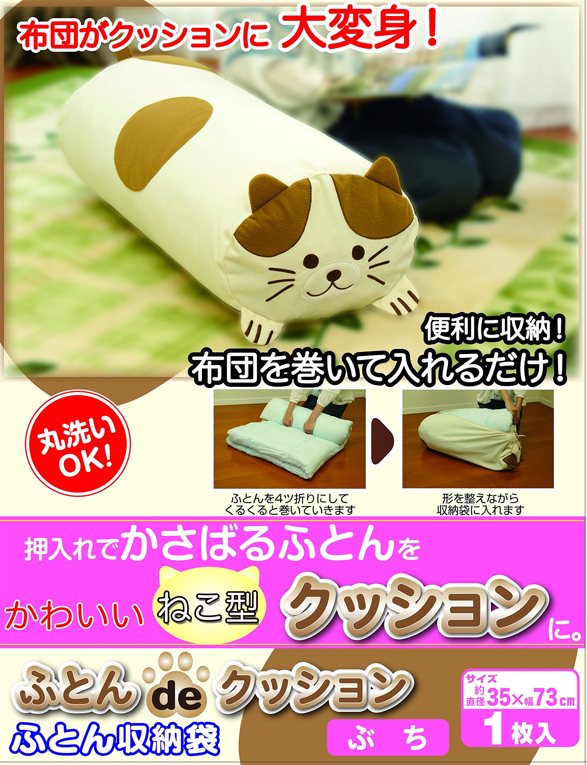 "Futon de Cushion" can be used as a cute cat cushion by putting a futon in a special storage bag.