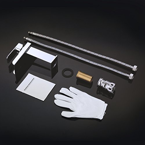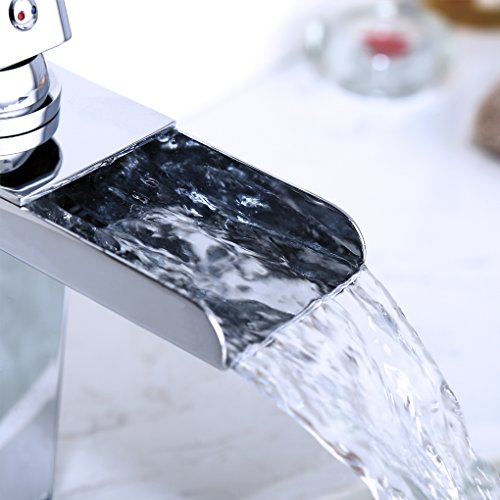 Charmingwater Bathroom Sink Faucet, SUS 304 Stainless Steel Mordem Waterfall Spout Basin Mixer Taps, Vanity Basin Faucet Single Handle Hot & Cold Water Sink Tap with Deck Plate Chrome Finish