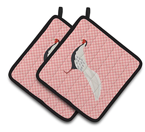 Caroline's Treasures BB7929PTHD Silver Pheasant Pink Check Decorated Pot Holder, 7.5" x 7.5", Multicolor